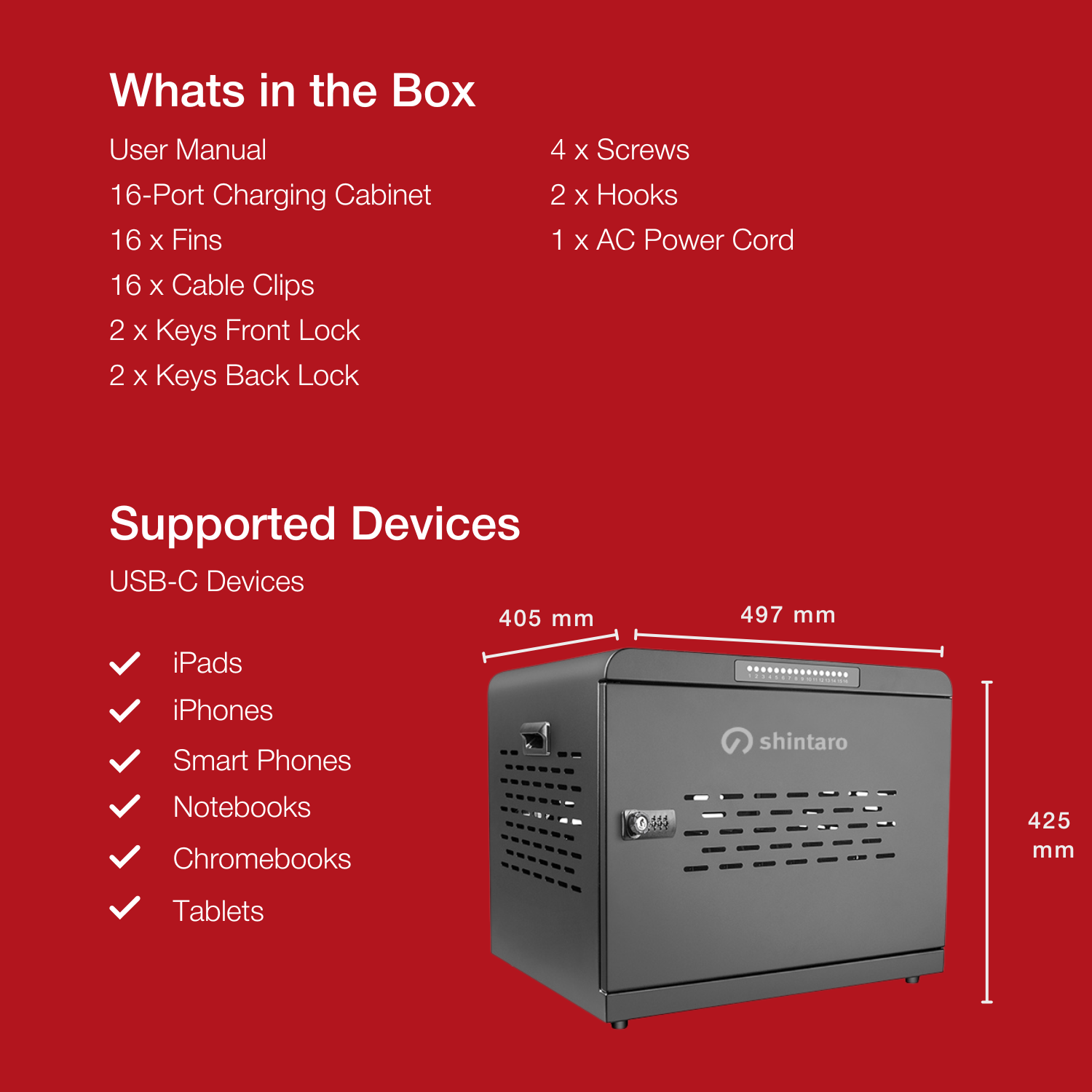 Shintaro Charging Cabinet 16 Ports 1000W USB-C