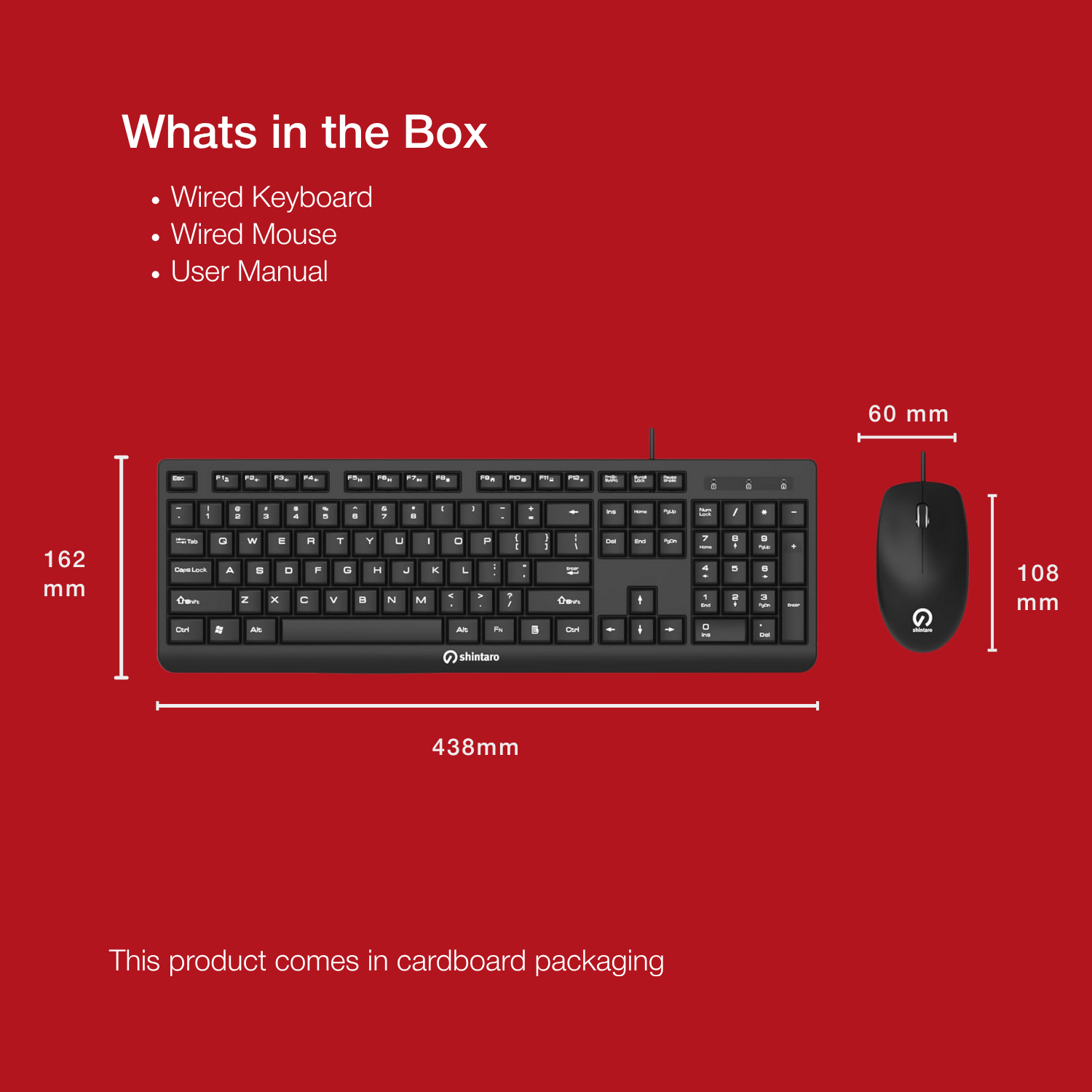 The Shintaro Wired Keyboard & Mouse combo is a sturdy, ergonomically design corded keyboard & mouse for everyday use. The keyboard is designed to provide both comfort and durable usage along adjustable tilt legs. The mouse has a great grip and precise tracking capability to enhance the user experience.
